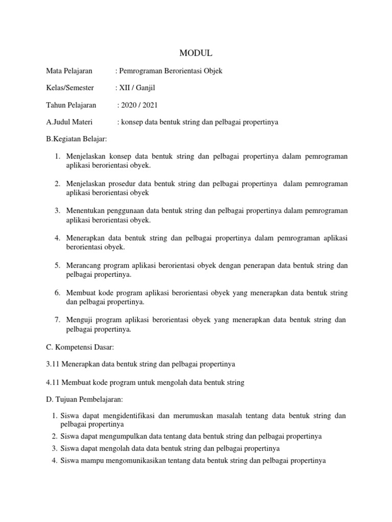 1. Siswa dapat mengidentifikasi dan merumuskan masalah tentang data bentuk string dan