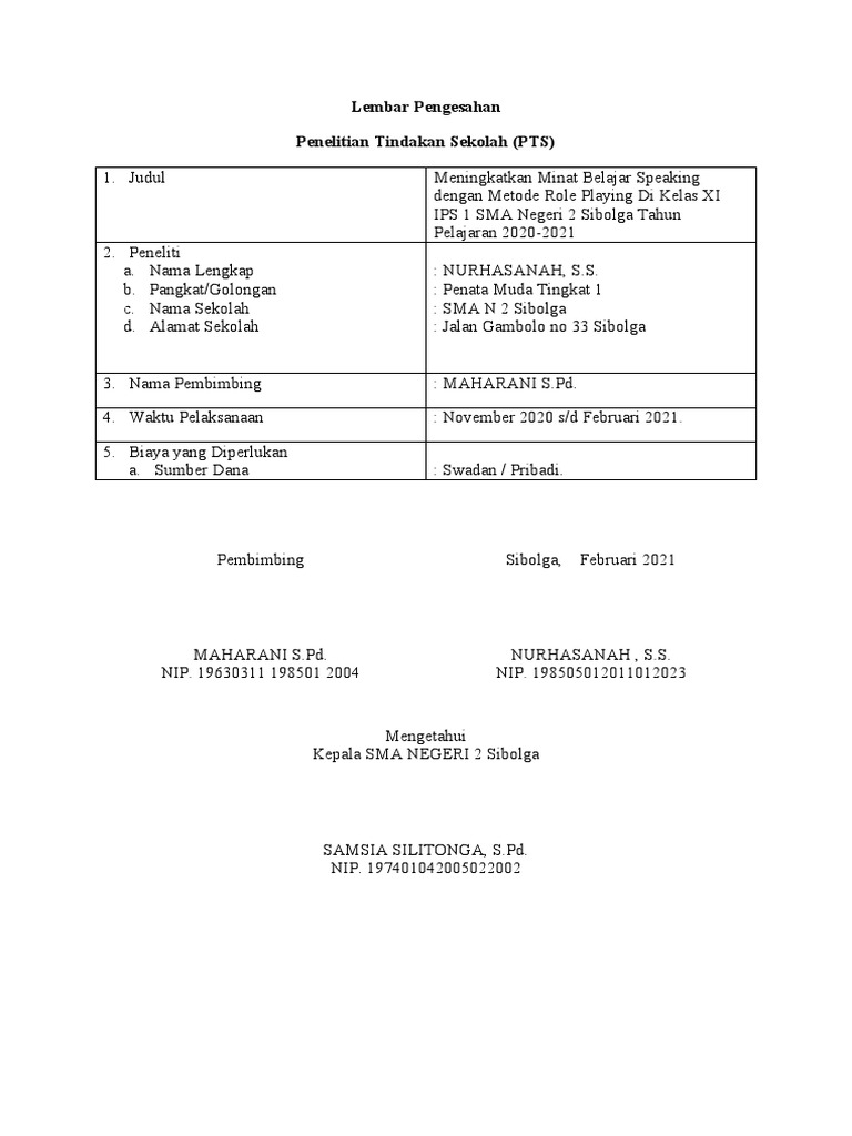 3. Nama Pembimbing : MAHARANI S.Pd.