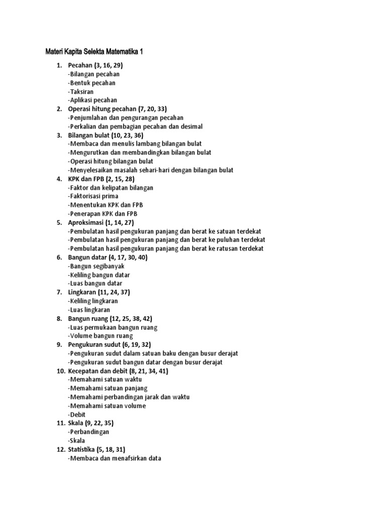 Materi Kapita Selekta Matematika 1