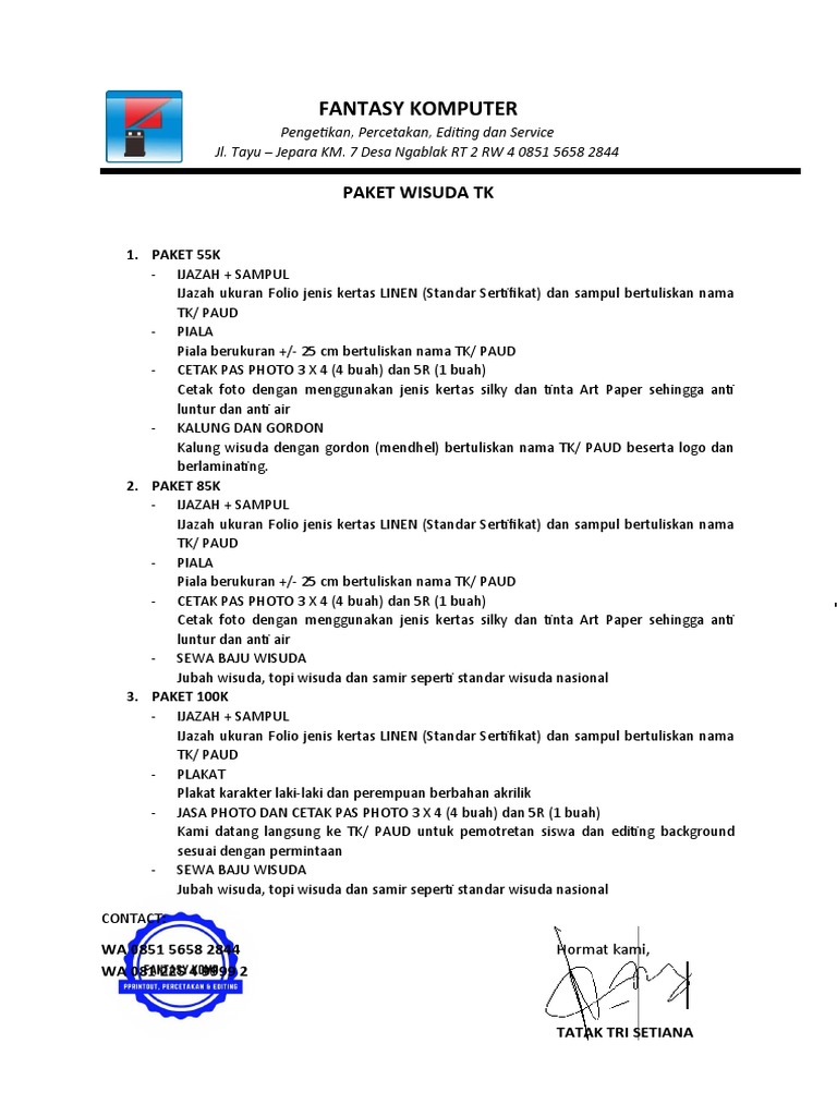 - JASA PHOTO DAN CETAK PAS PHOTO 3 X 4 (4 buah) dan 5R (1 buah)