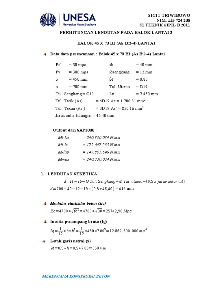 PERHITUNGAN LENDUTAN PADA BALOK LANTAI 3