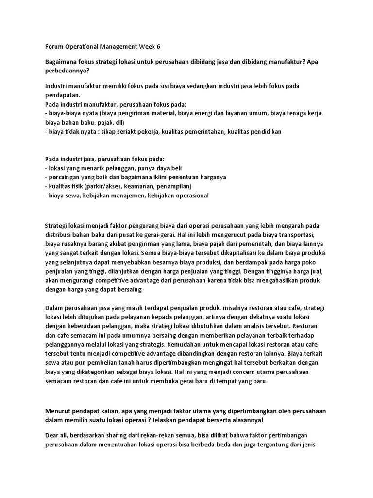 Bagaimana fokus strategi lokasi untuk perusahaan dibidang jasa dan dibidang manufaktur? Apa