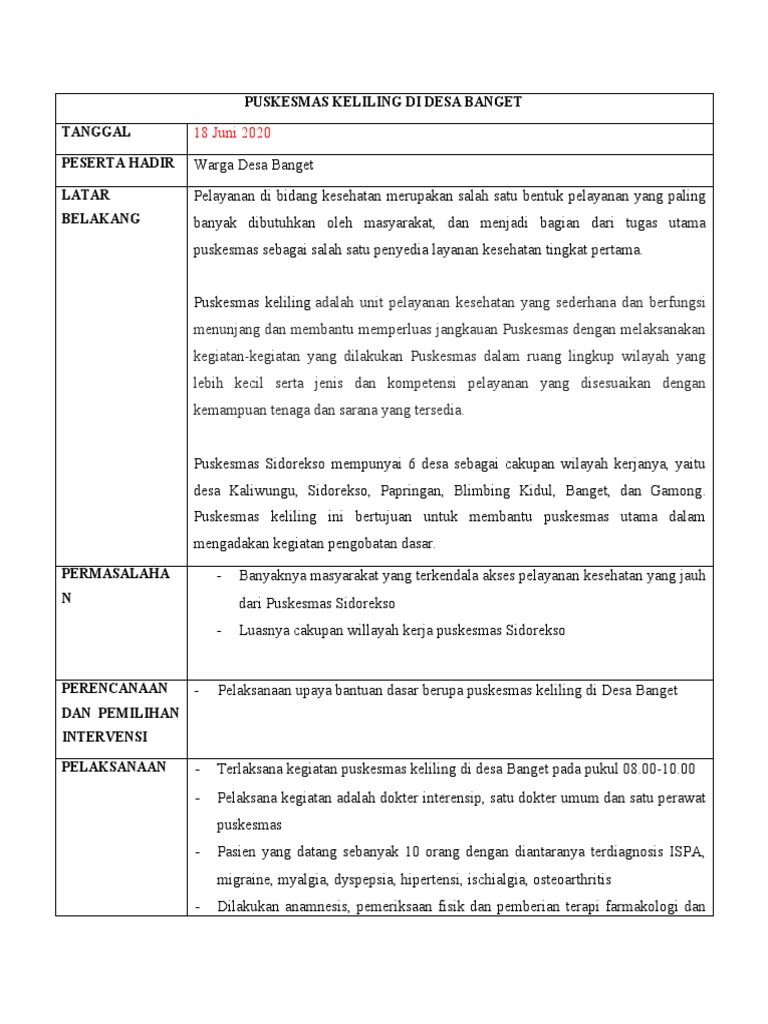 PERENCANAAN - Pelaksanaan upaya bantuan dasar berupa puskesmas keliling di Desa Banget