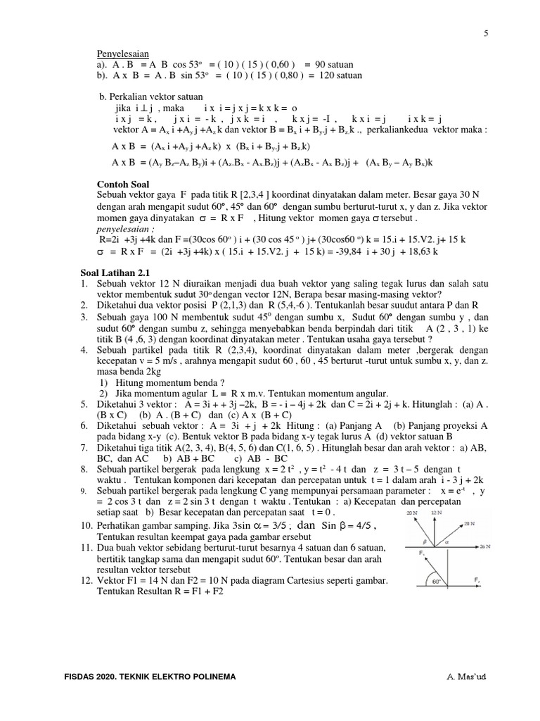 2. Diketahui dua vektor posisi P (2,1,3) dan R (5,4,-6 ). Tentukanlah besar suudut antara P dan R