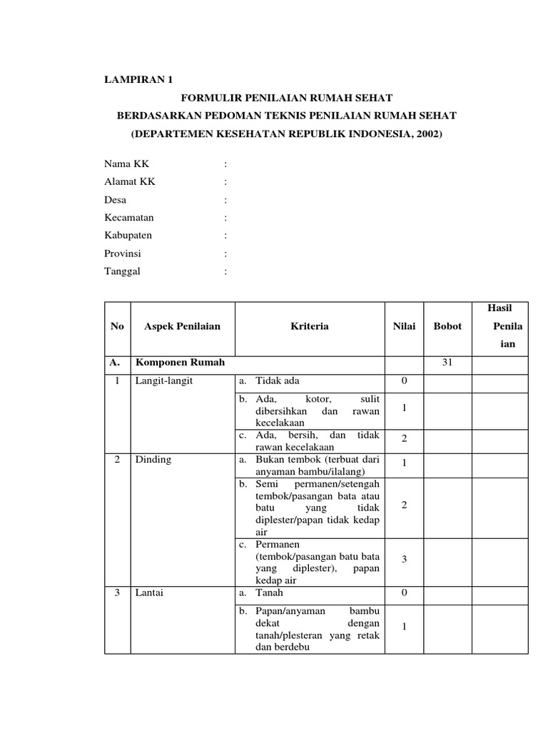 FORMULIR PENILAIAN RUMAH SEHAT