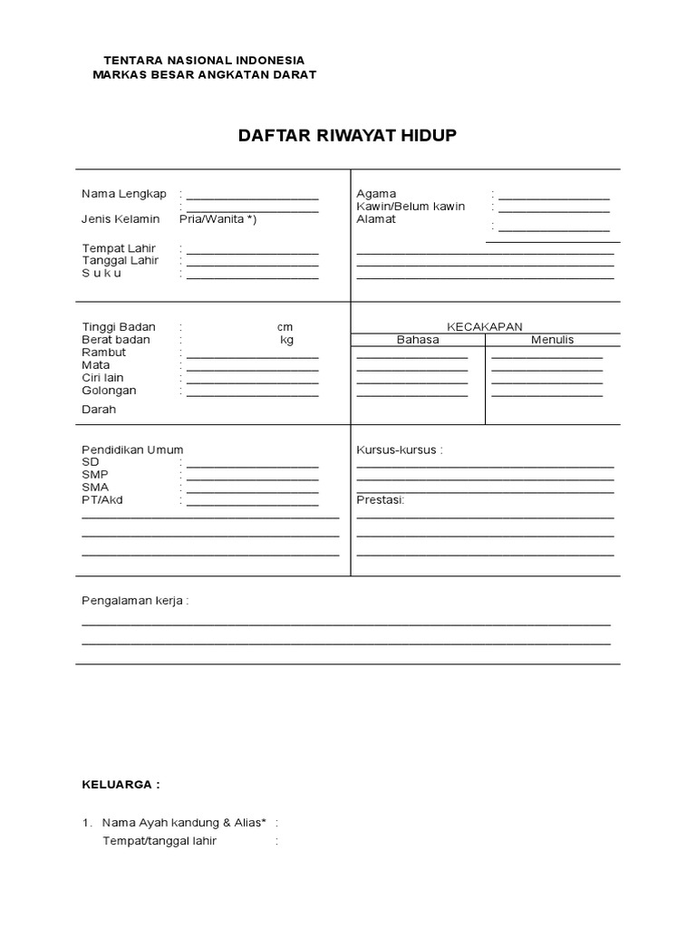 6. Keluarga yang menjadi tanggungan Calon (bagi yang sudah kawin) :