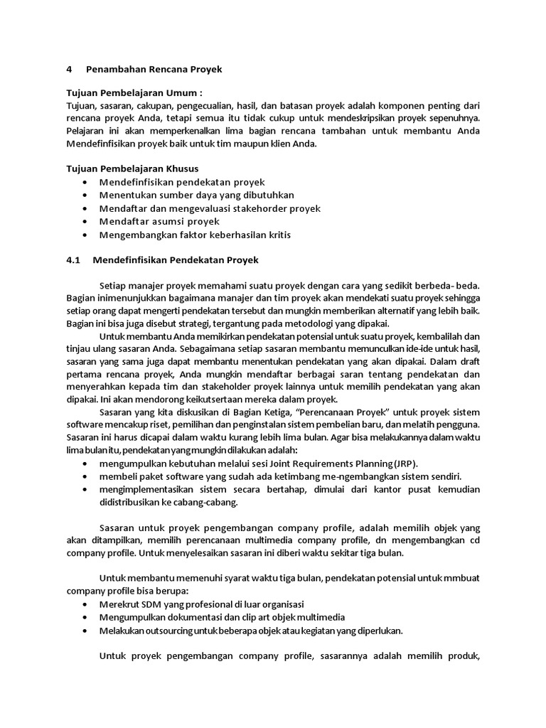 Bagian inimenunjukkan bagaimana manajer dan tim proyek akan mendekati suatu proyek sehingga