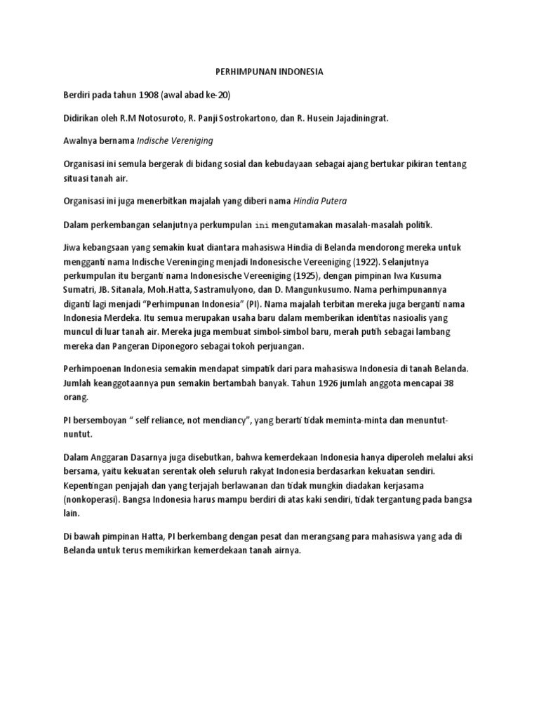 menyampaikan penjelasan bahwa organisasi perhimpunan Indonesia mempunyai tiga
