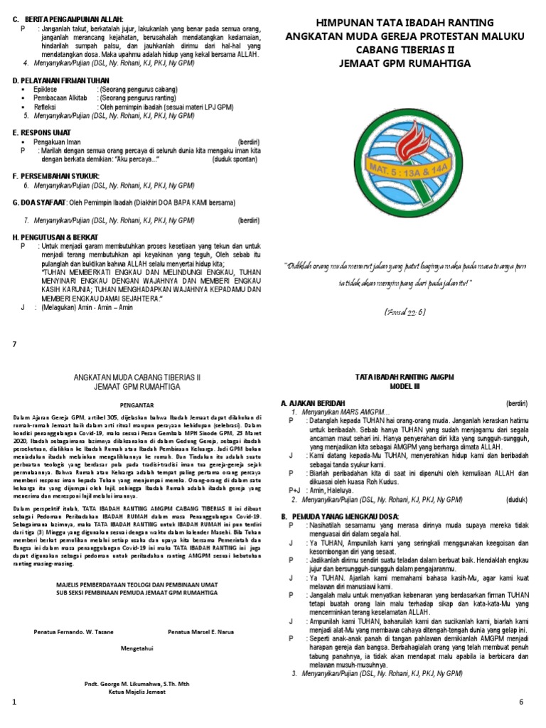 Dalam perspektif itulah, TATA IBADAH RANTING AMGPM CABANG TIBERIAS II ini dibuat