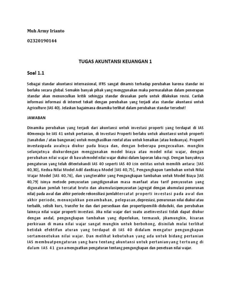Agriculture (IAS 40). Jelaskan bagaimana dinamika terlihat dalam perubahan standar tersebut!