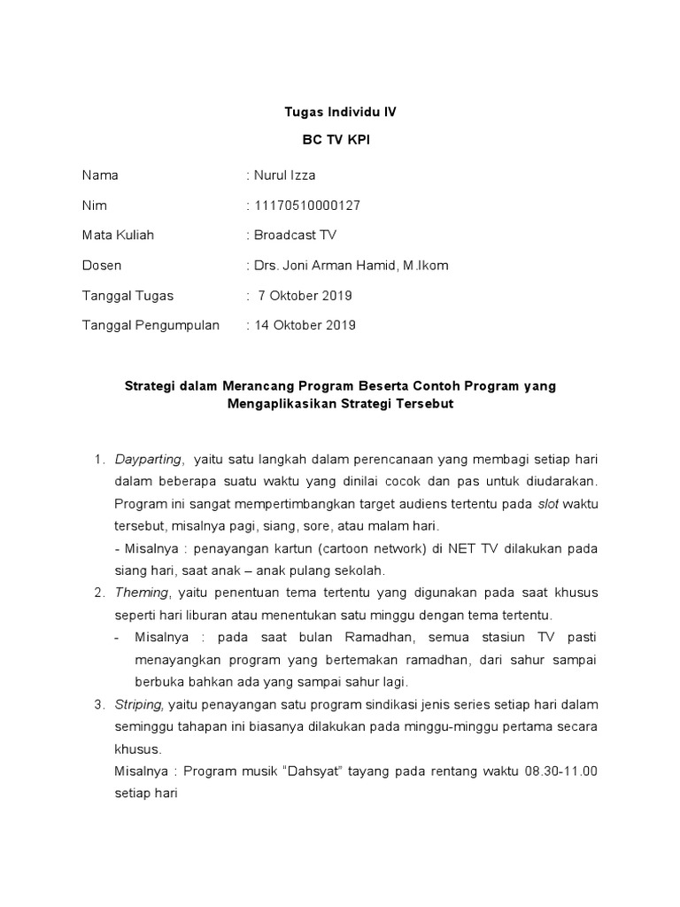 Misalnya : Program musik “Dahsyat” tayang pada rentang waktu 08.30-11.00