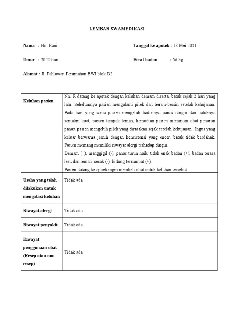 Nama : Nn. Rani Tanggal ke apotek : 18 Mei 2021