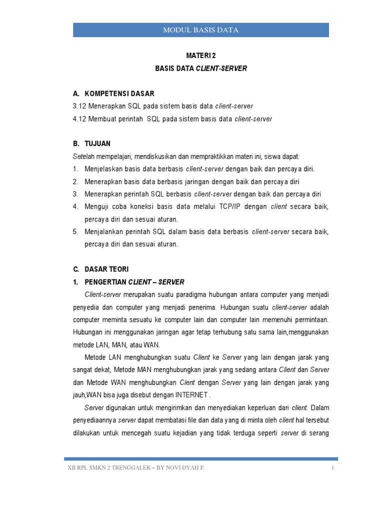 1. Menjelaskan basis data berbasis client-server dengan baik dan percaya diri.