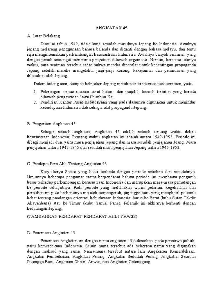 B. Pengertian Angkatan 45