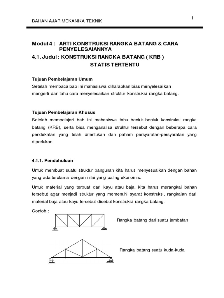 material baja atau kayu tersebut disebut konstruksi rangka batang.