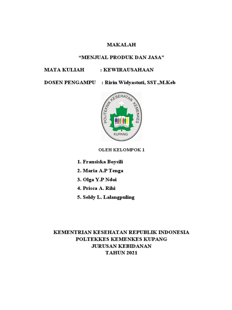 Makalah ini disusun untuk melengkapi tugas mata kuliah kewirausahaan