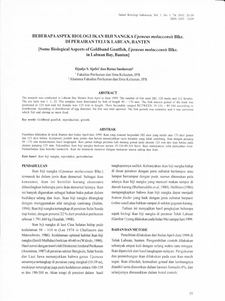 Sjafei & Susilawati- BeberapaAspek Biologi Ikan Biji Nangka IJpeneus Moluccensis Blkr. di Perairan Teluk Labuan, Banten