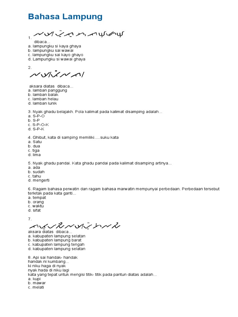 d. dang lupa belajagh bahasa lappung
