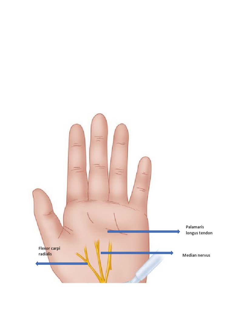 Saraf median dibius dengan memasukkan jarum di antara tendon palmaris longus dan fleksor