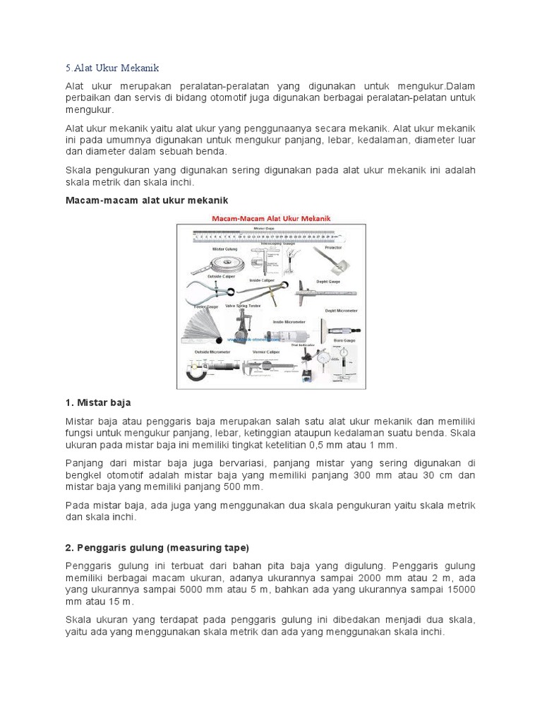 Alat ukur mekanik yaitu alat ukur yang penggunaanya secara mekanik. Alat ukur mekanik