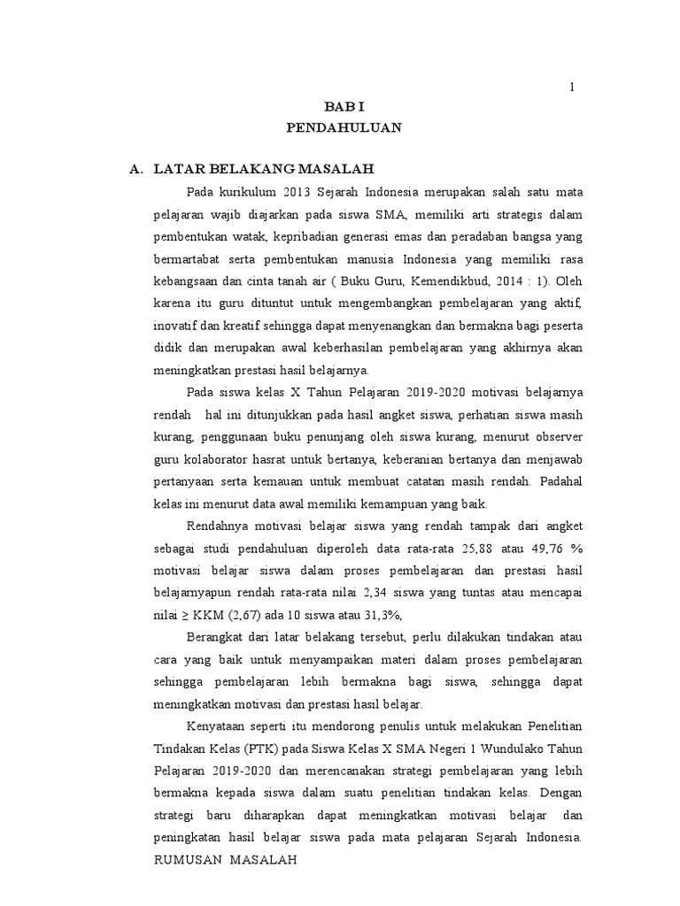 Tindakan Kelas (PTK) pada Siswa Kelas X SMA Negeri 1 Wundulako Tahun