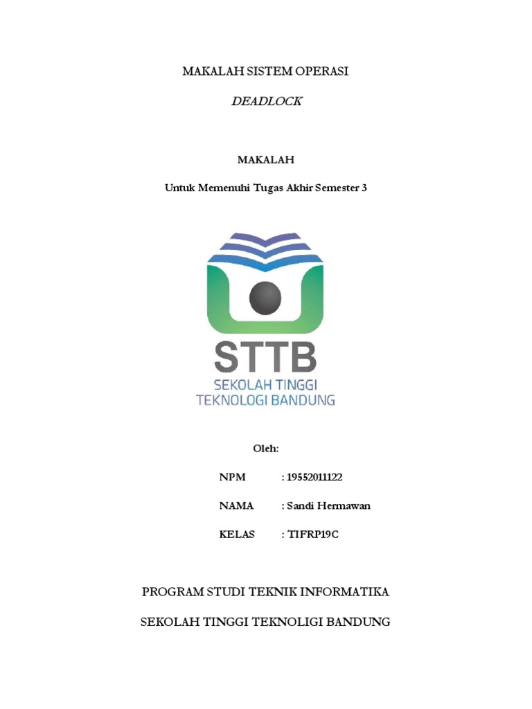 Pada penyusunan makalah ini saya akan menjelaskan tentang deadlock, mulai dari contohnya,