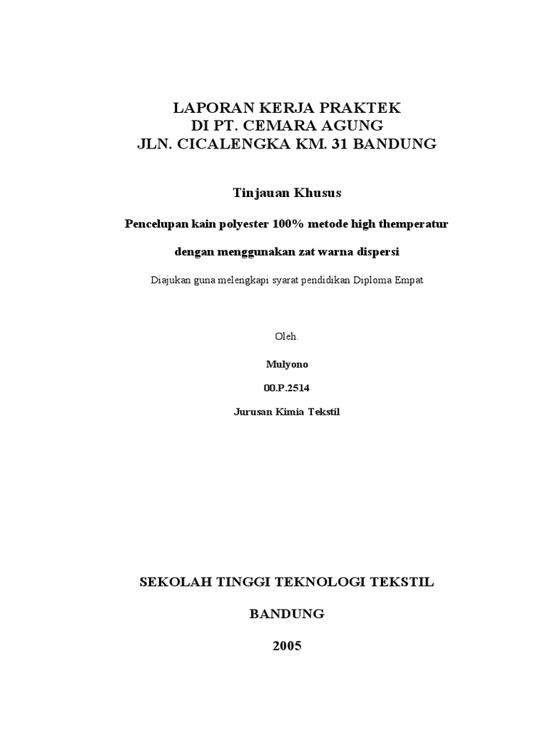 hasil pengamatan dilapangan yakni “Pencelupan Kain Poliester 100% Metode