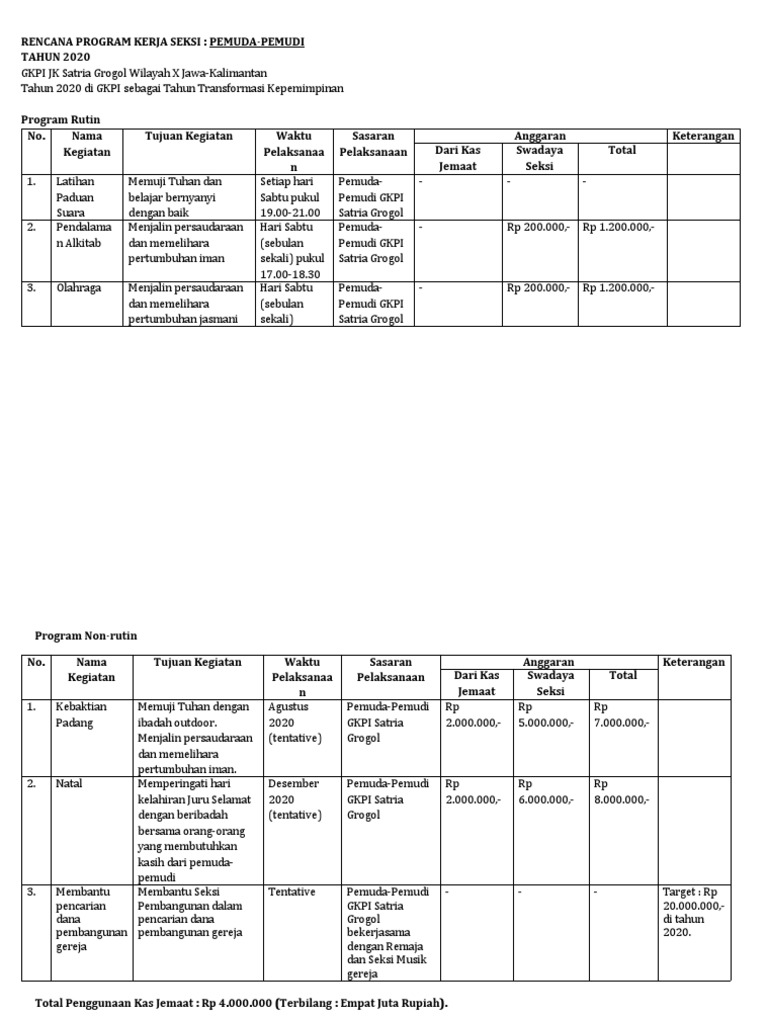 RENCANA PROGRAM KERJA SEKSI : PEMUDA-PEMUDI