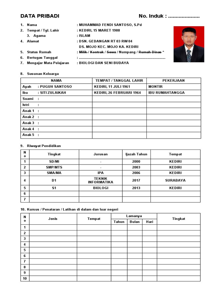 DATA PRIBADI No. Induk : .....................