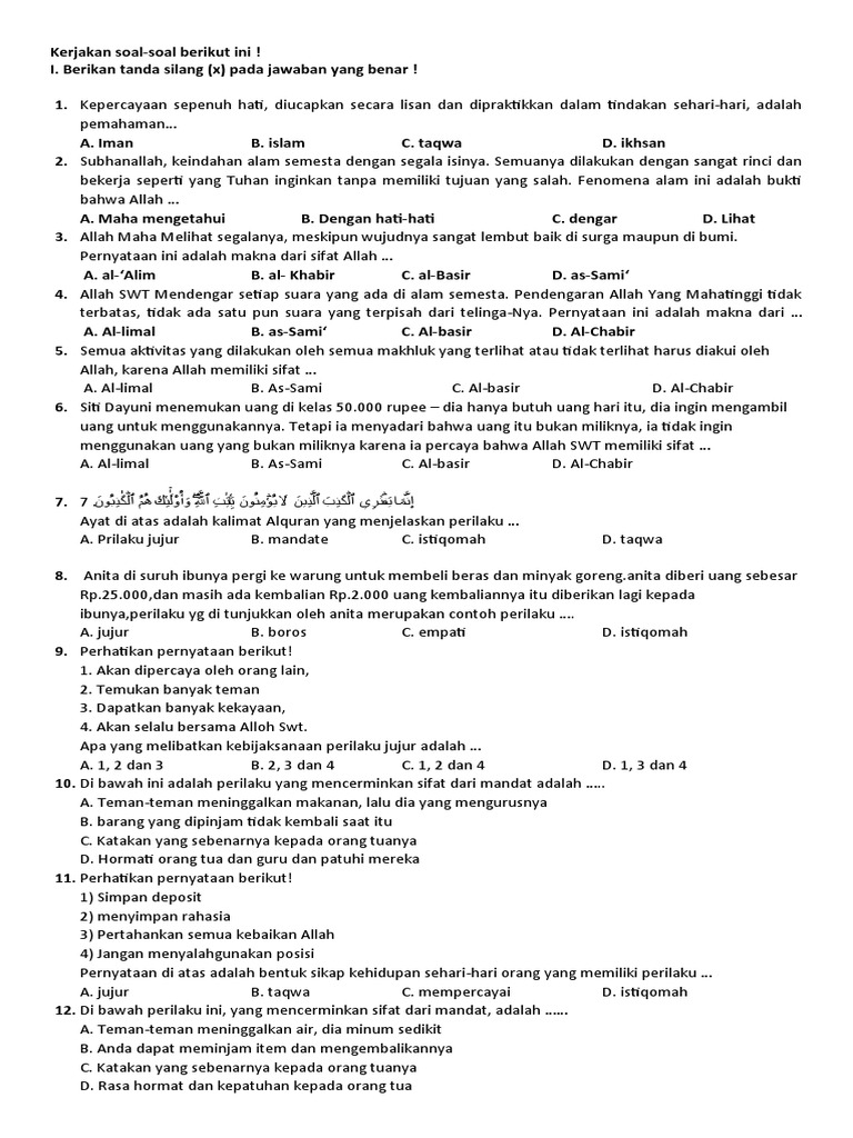 A. jujur B. taqwa C. mempercayai D. istiqomah
