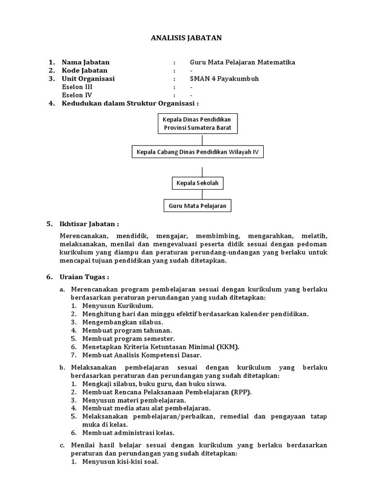 1. Nama Jabatan : Guru Mata Pelajaran Matematika