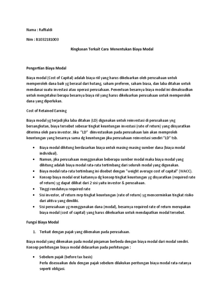 Ringkasan Terkait Cara Menentukan Biaya Modal