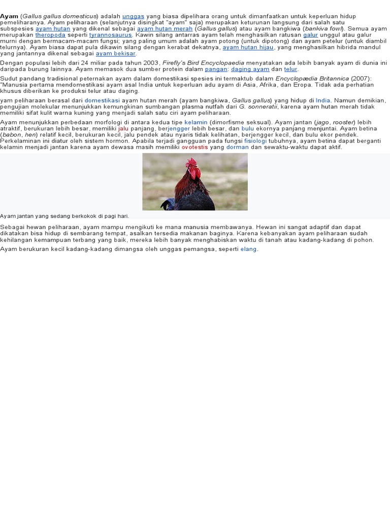 (Gallus gallus domesticus) adalah unggas yang biasa dipelihara orang untuk dimanfaatkan untuk keperluan hidup