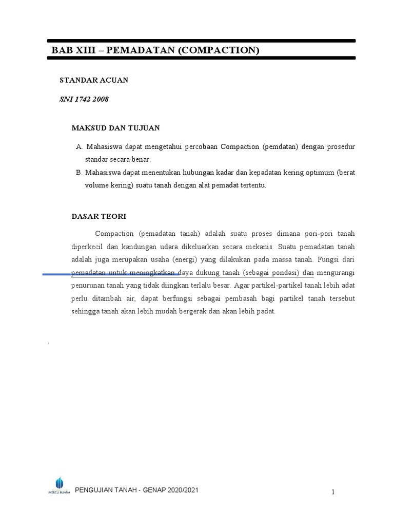 A. Mahasiswa dapat mengetahui percobaan Compaction (pemdatan) dengan prosedur