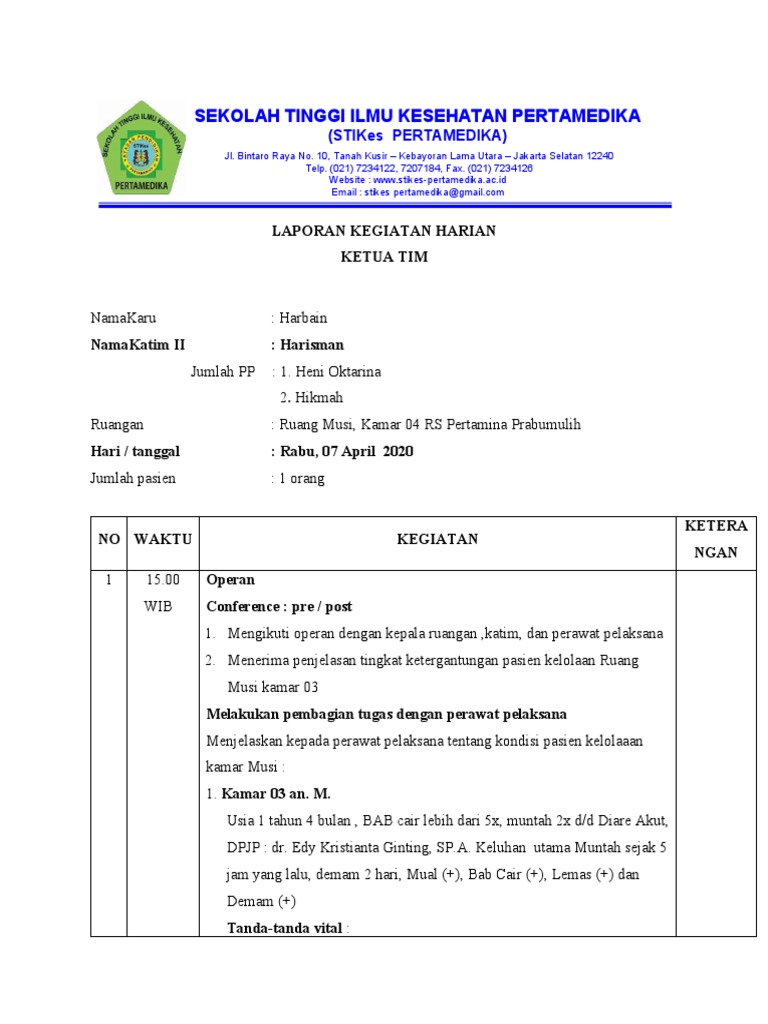 1. Mengikuti operan dengan kepala ruangan ,katim, dan perawat pelaksana