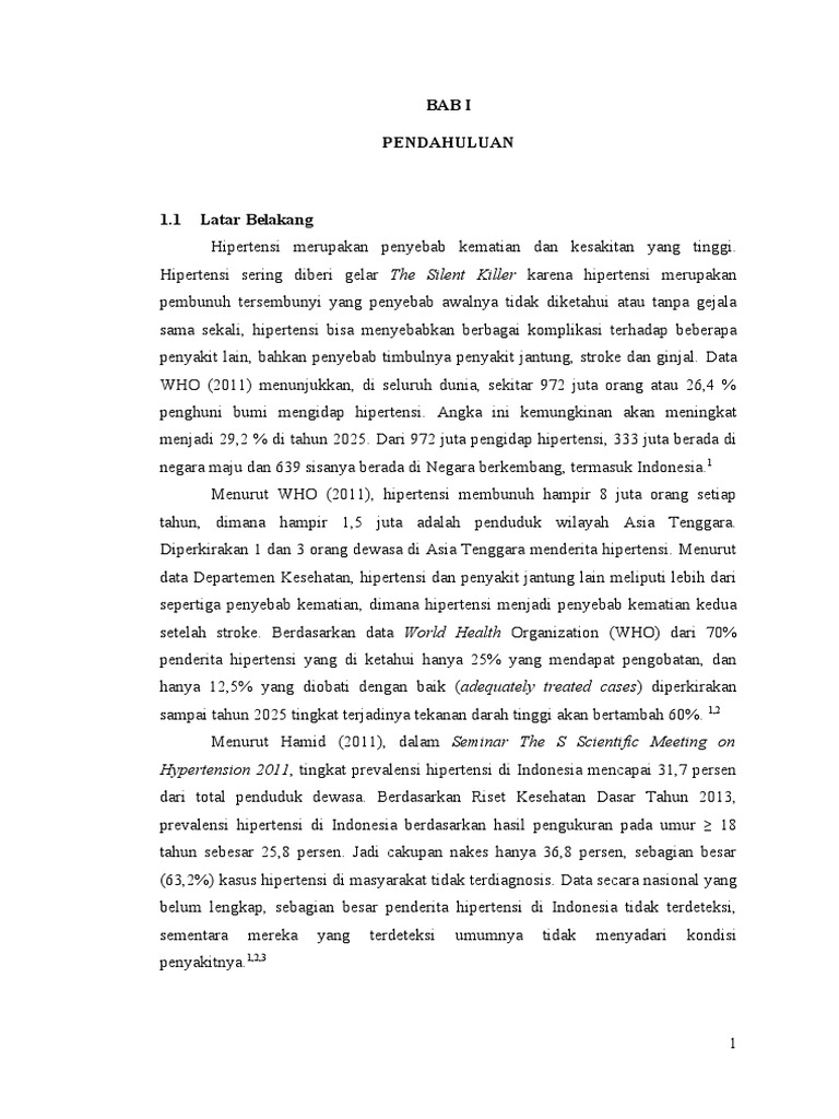 penelitian terhadap penderita hipertensi dengan judul Perubahan Tingkat