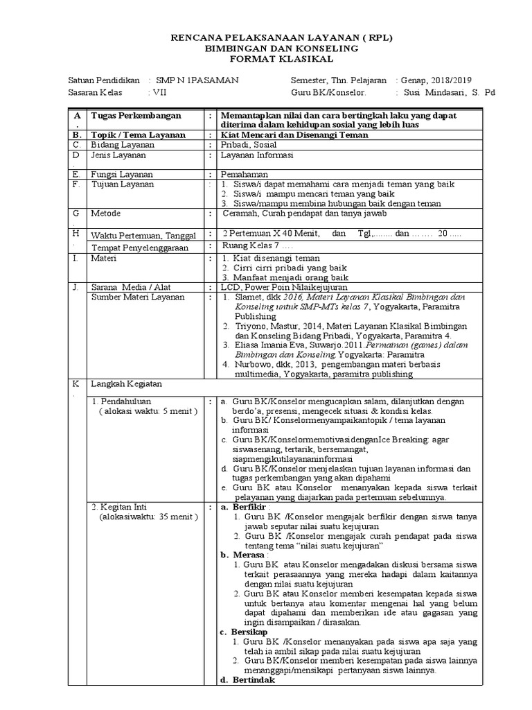 RENCANA PELAKSANAAN LAYANAN ( RPL)