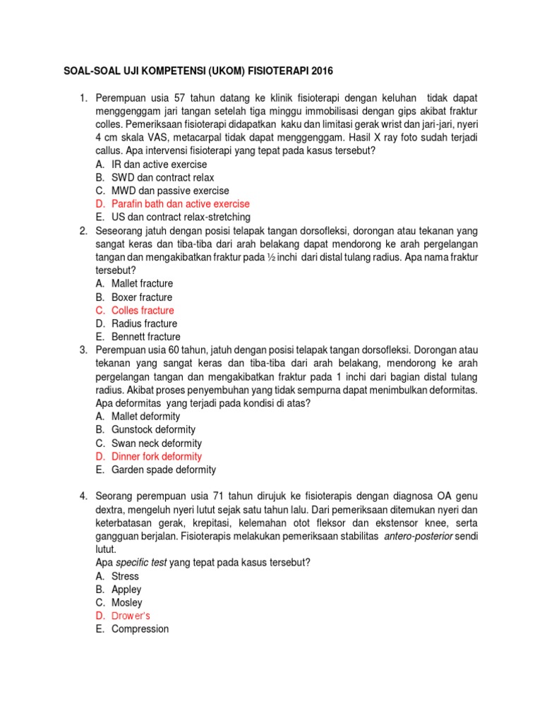 1. Perempuan usia 57 tahun datang ke klinik fisioterapi dengan keluhan tidak dapat