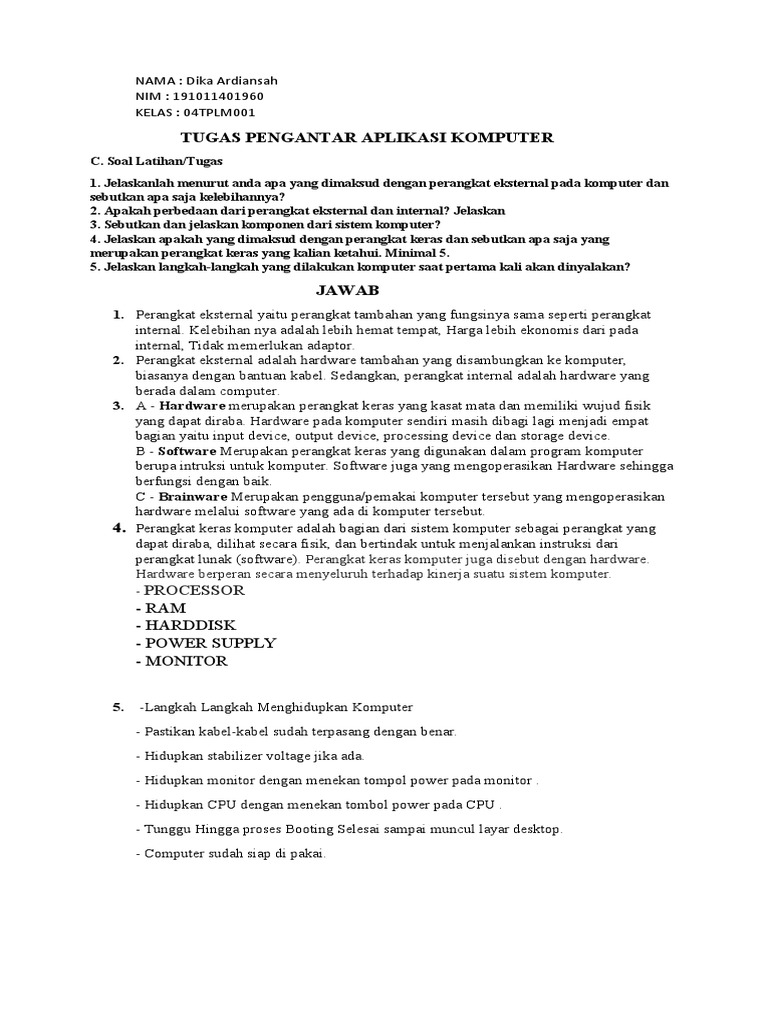 1. Jelaskanlah menurut anda apa yang dimaksud dengan perangkat eksternal pada komputer dan