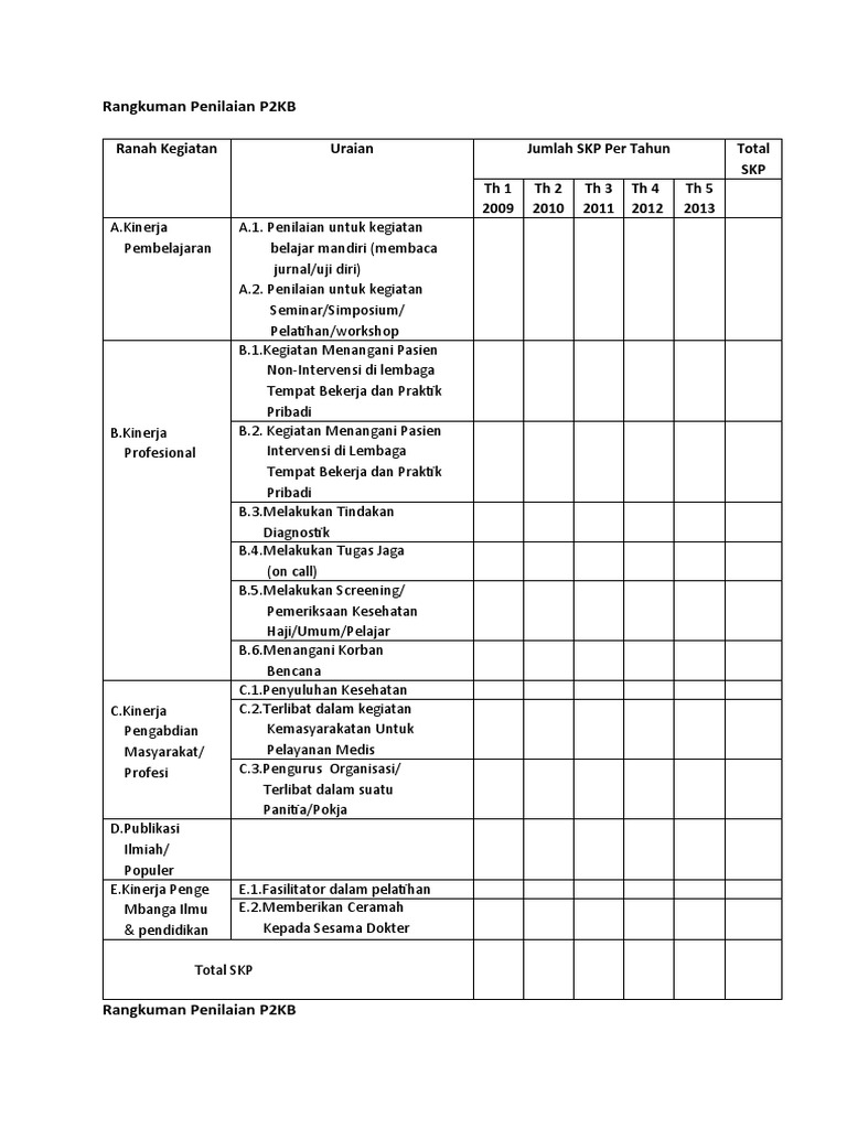 Rangkuman Penilaian P2KB