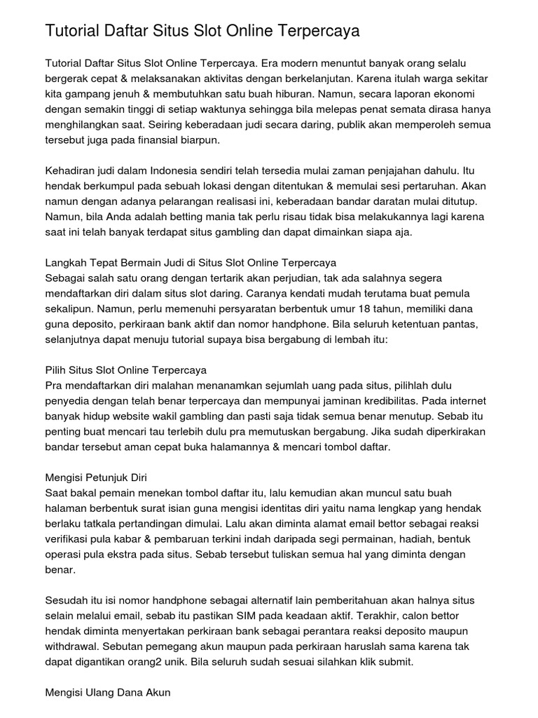 Tutorial Daftar Situs Slot Online Terpercaya. Era modern menuntut banyak orang selalu