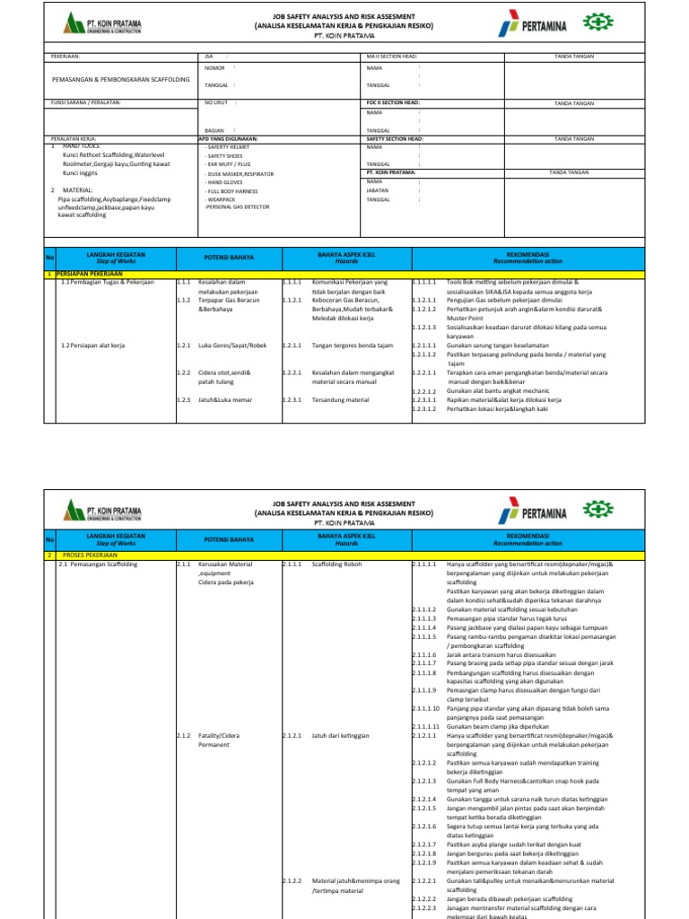 2.1.1.1.8 Pembangungan scaffolding harus disesuaikan dengan