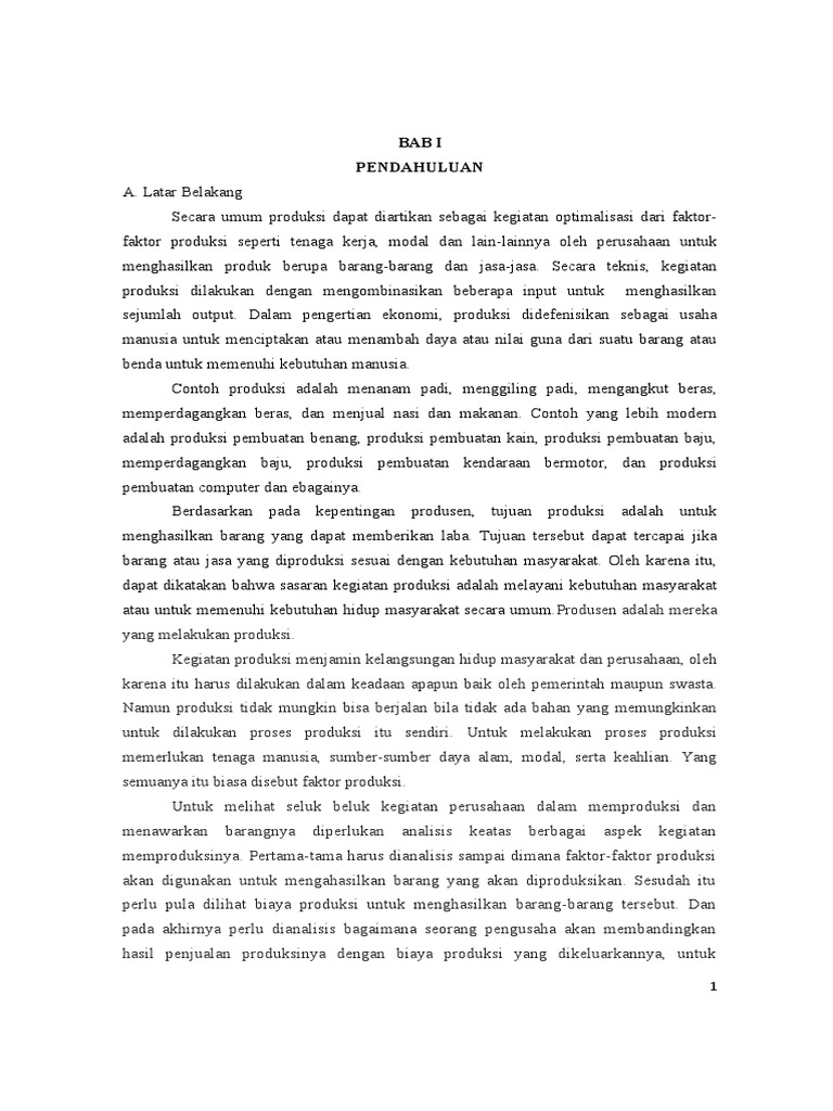 sejumlah output. Dalam pengertian ekonomi, produksi didefenisikan sebagai usaha