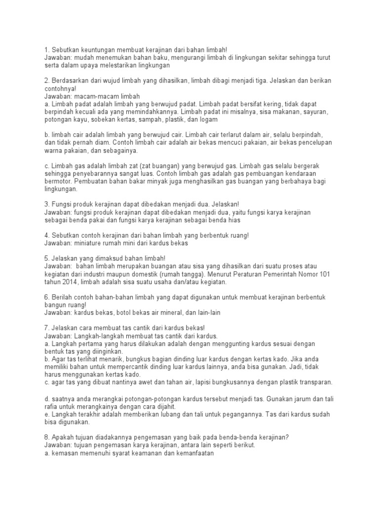 10. Beri contoh benda kerajinan yang memanfaatkan bahan limbah di sekitar kita!
