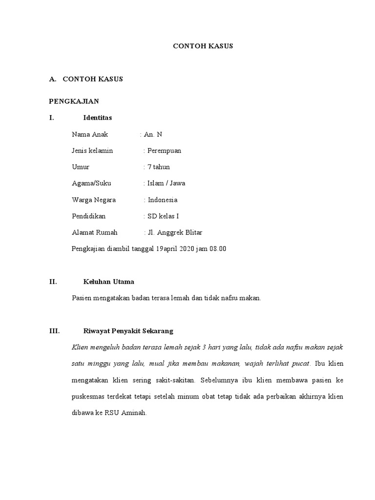 Klien mengeluh badan terasa lemah sejak 3 hari yang lalu, tidak ada nafsu makan sejak
