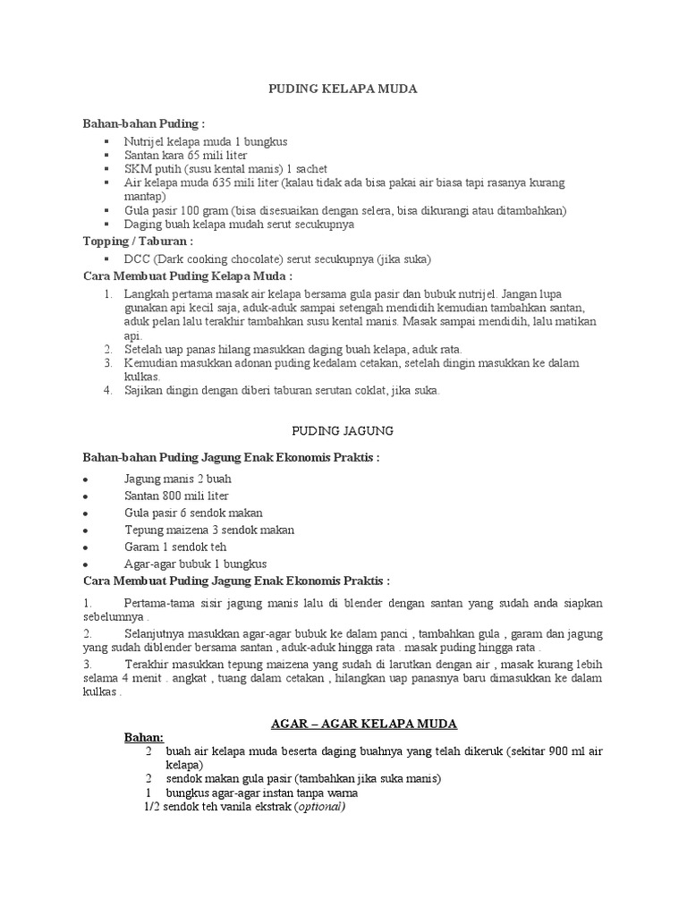 Resep Puding dan Dessert Kelapa Mudah