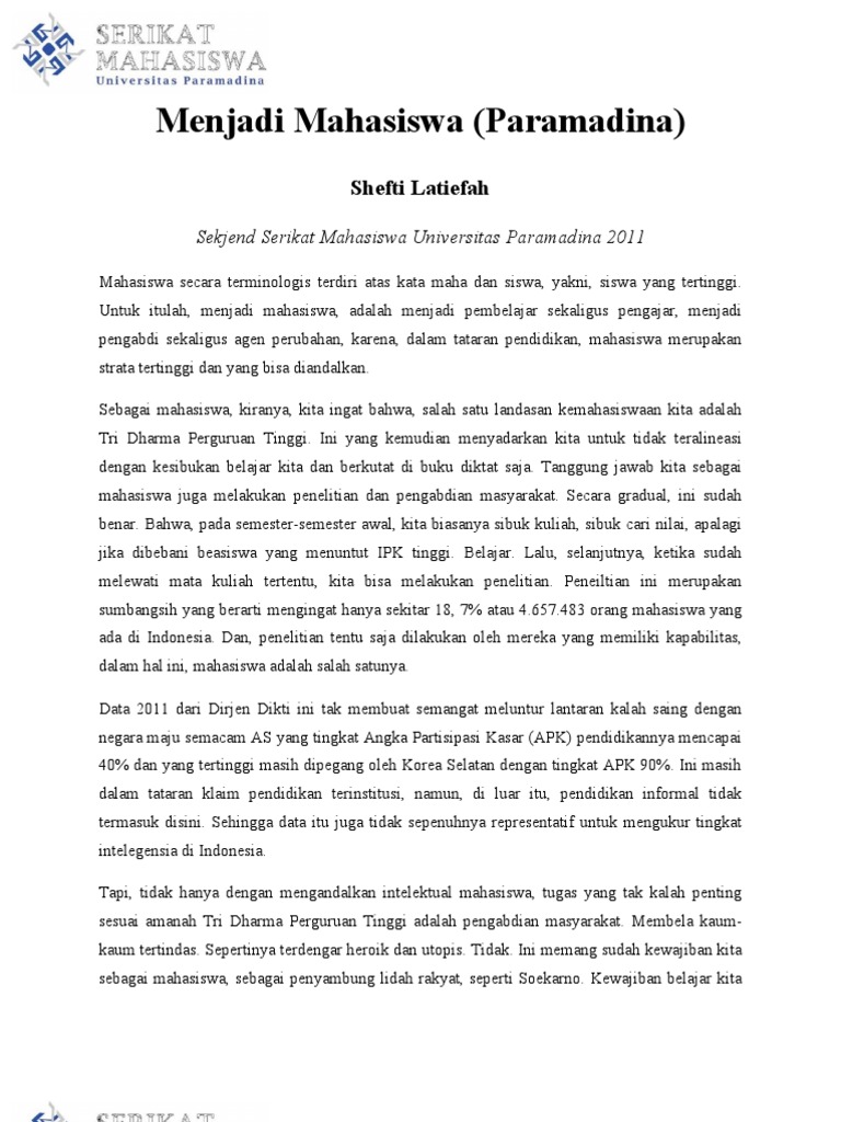 Sebagai mahasiswa, kiranya, kita ingat bahwa, salah satu landasan kemahasiswaan kita adalah
