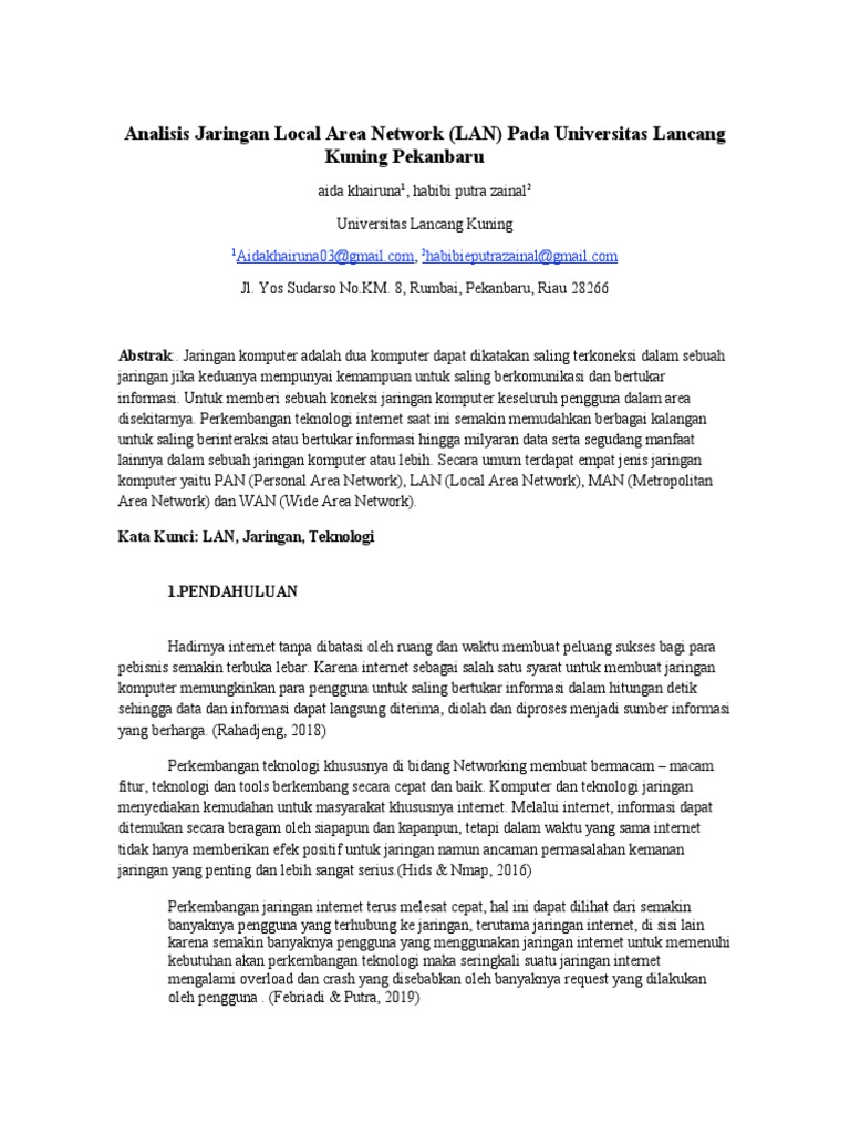 Analisis Jaringan Local Area Network (LAN) Pada Universitas Lancang