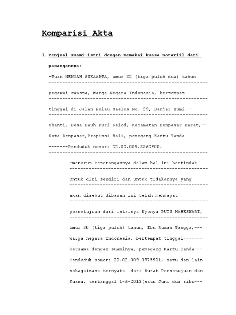 1. Penjual suami-istri dengan memakai kuasa notariil dari