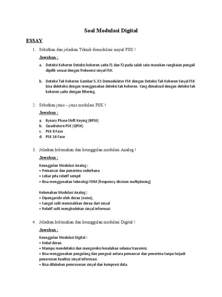 4. Jelaskan kelemahan dan keunggulan modulasi Digital !